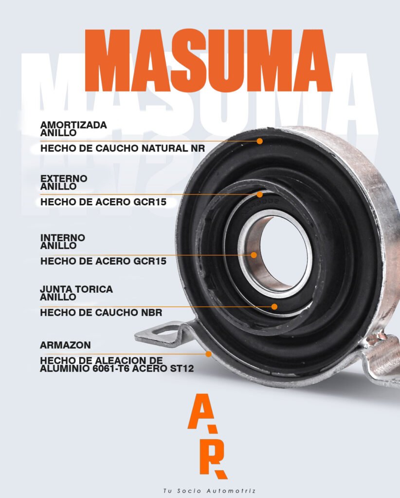 El Bearing Center Support Masuma es un componente esencial del sistema de transmisión, diseñado para brindar estabilidad, suavidad y seguridad en vehículos con eje de transmisión largo o dividido.
